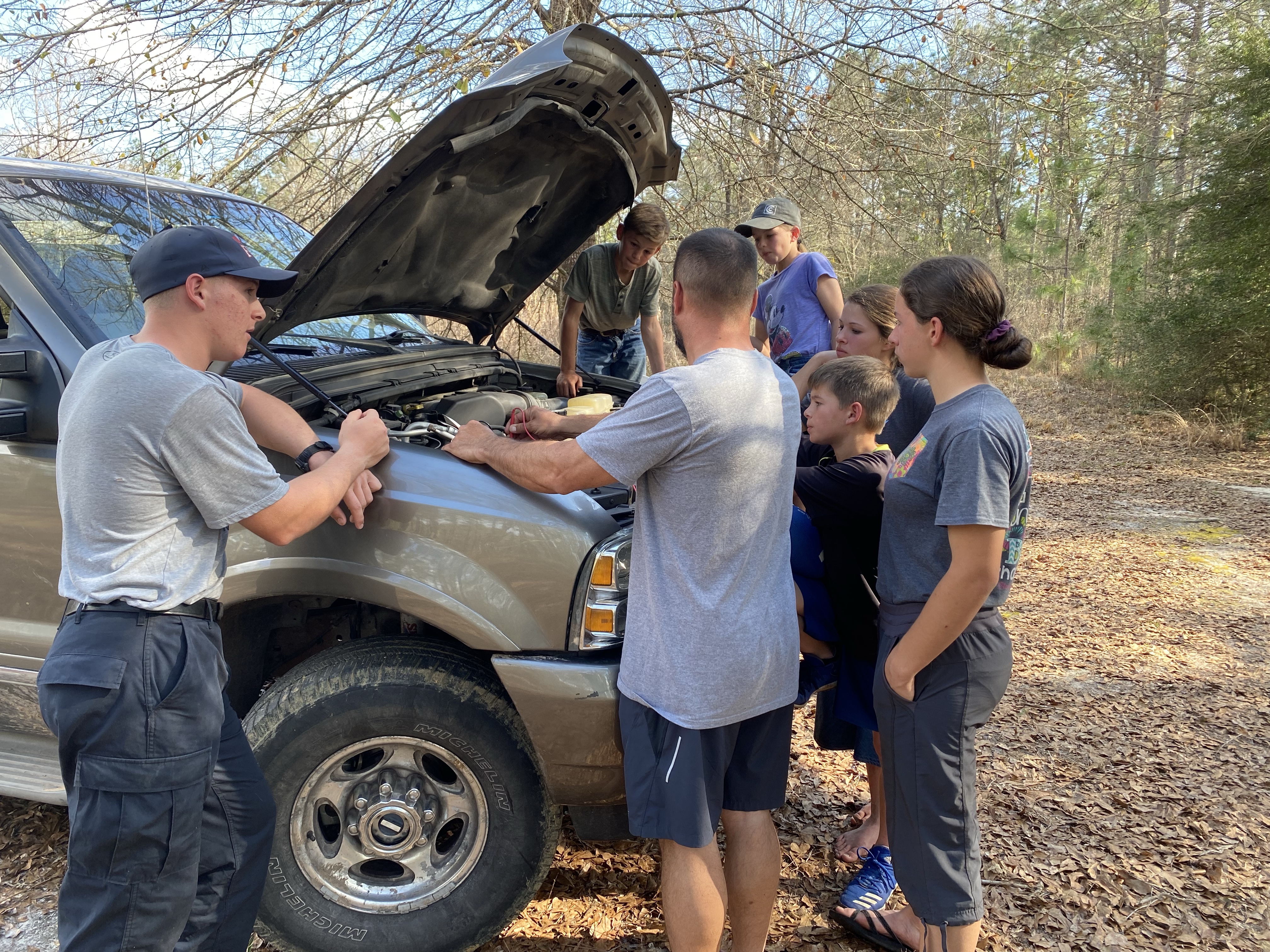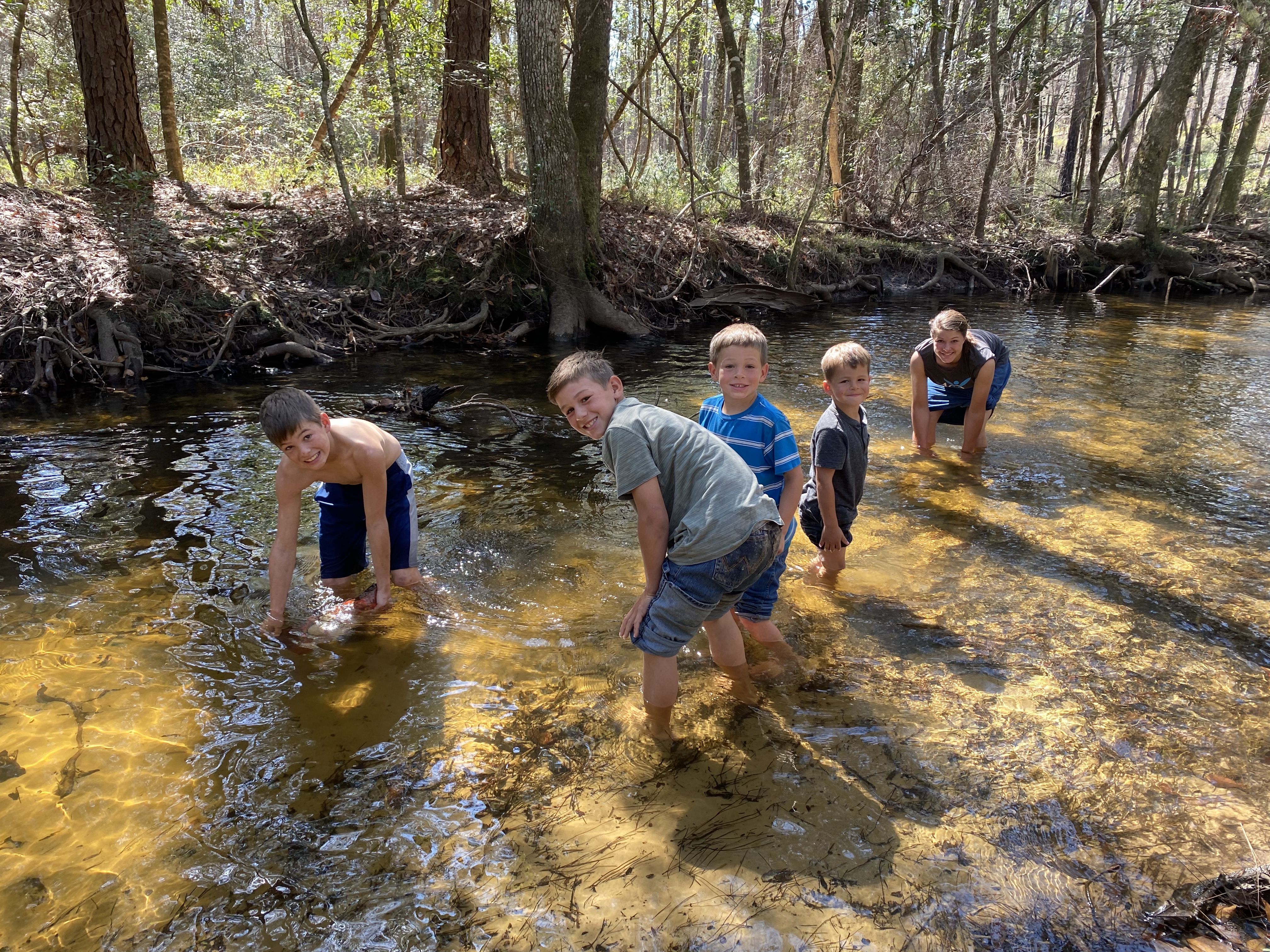 We made it to the Conecuh National Forest in southern Alabama and ended up finding the best spot to camp! We found a nicely shredded meadow in the midst of the 80,000 acre forest, which was perfect for our whole set up, plus room to play! There was even a running creek that was less than 300 yards away. We set up camp and cooked supper as it was getting dark. We are learning how to be most efficient with our manpower, time, space etc.