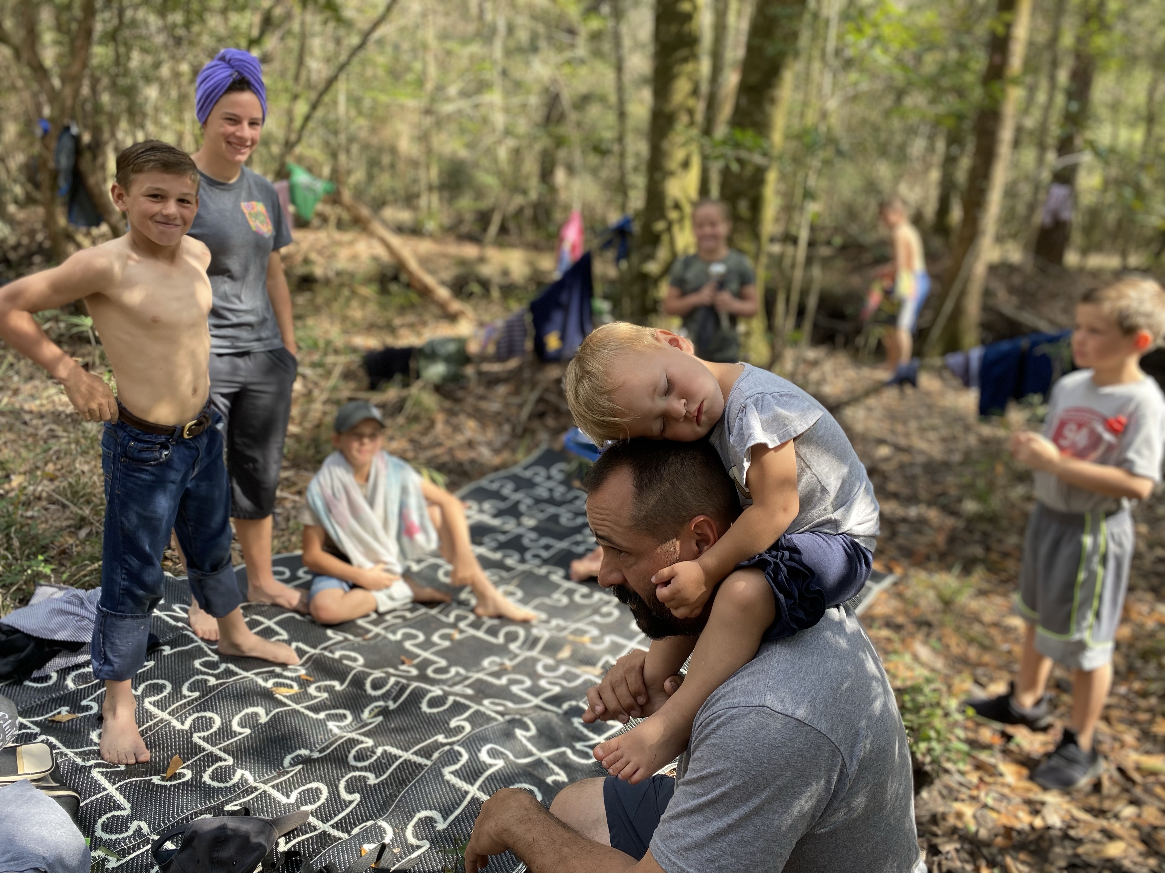 The next day we all went down to the creek. The kids played and swam, we washed dishes, washed clothes, and took showers. It was so fun! Now I know why people in the old days designated a day for washing though. It took everyone to help haul things and get it all accomplished! Stephen invested in a wonderful hot water shower system that worked SO well! It’s called the Joolca and we love it so far! We drafted water from the creek and heated it up with the water heating system and took hot showers in the pop up shower! Amazing!!
