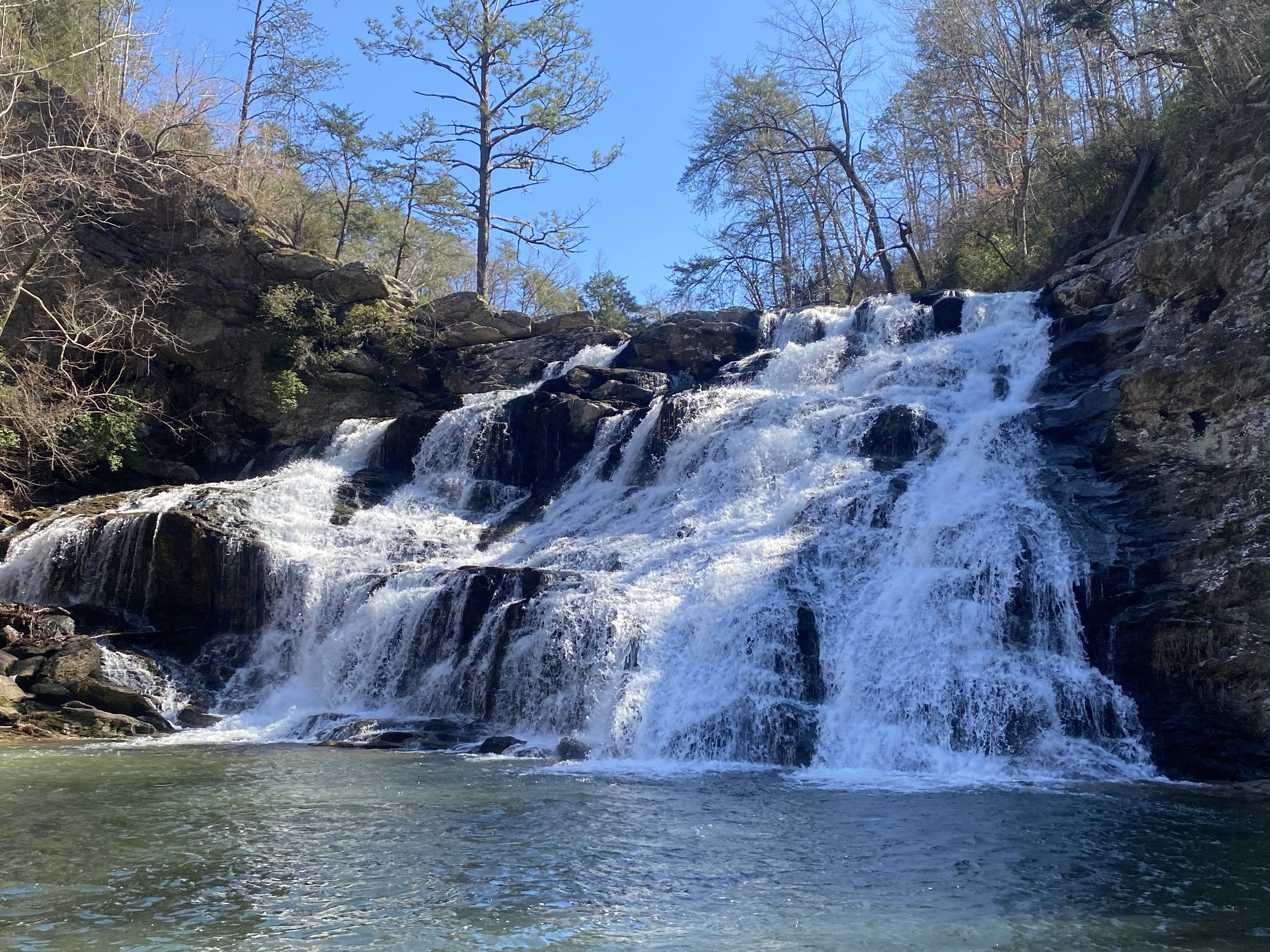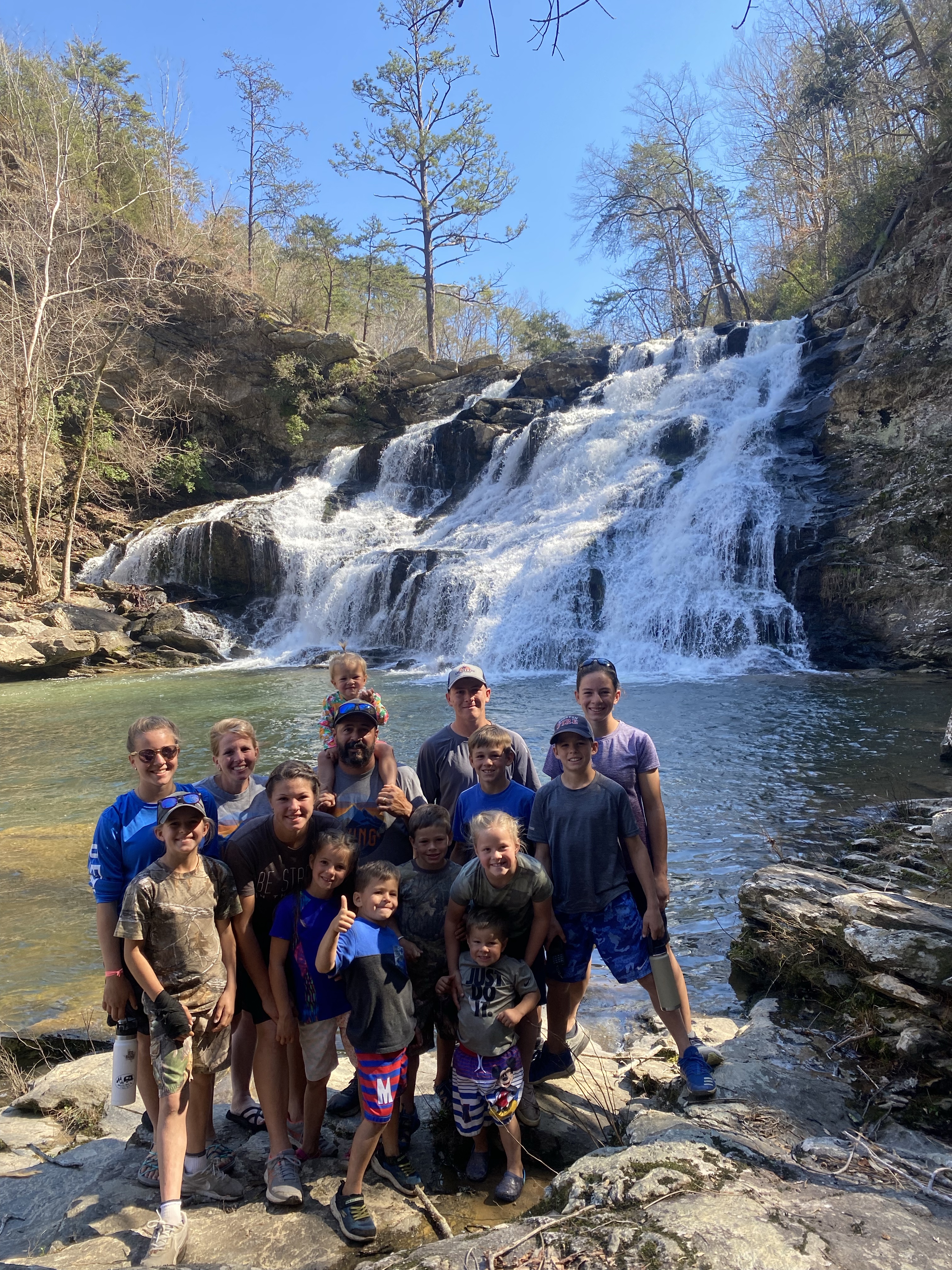 Then we loaded up and headed to salt creek falls. The plans were to go on a “hike” and play in the water if it wasn’t too cold…well, we went on quite the hike! Straight down the side of the mountain! All the kids were so concerned and caring towards me. Every few minutes one of them was asking if I was ok…evidently I’m not as agile as I used to be and it’s evident! Martin is the only one who “slipped” in the icy cold water as he was helping build a “bridge” for Uncle Andrew to cross over on. All in all, it was a beautiful area and one of northern Alabama’s “secret” spots that we were blessed to see and enjoy.