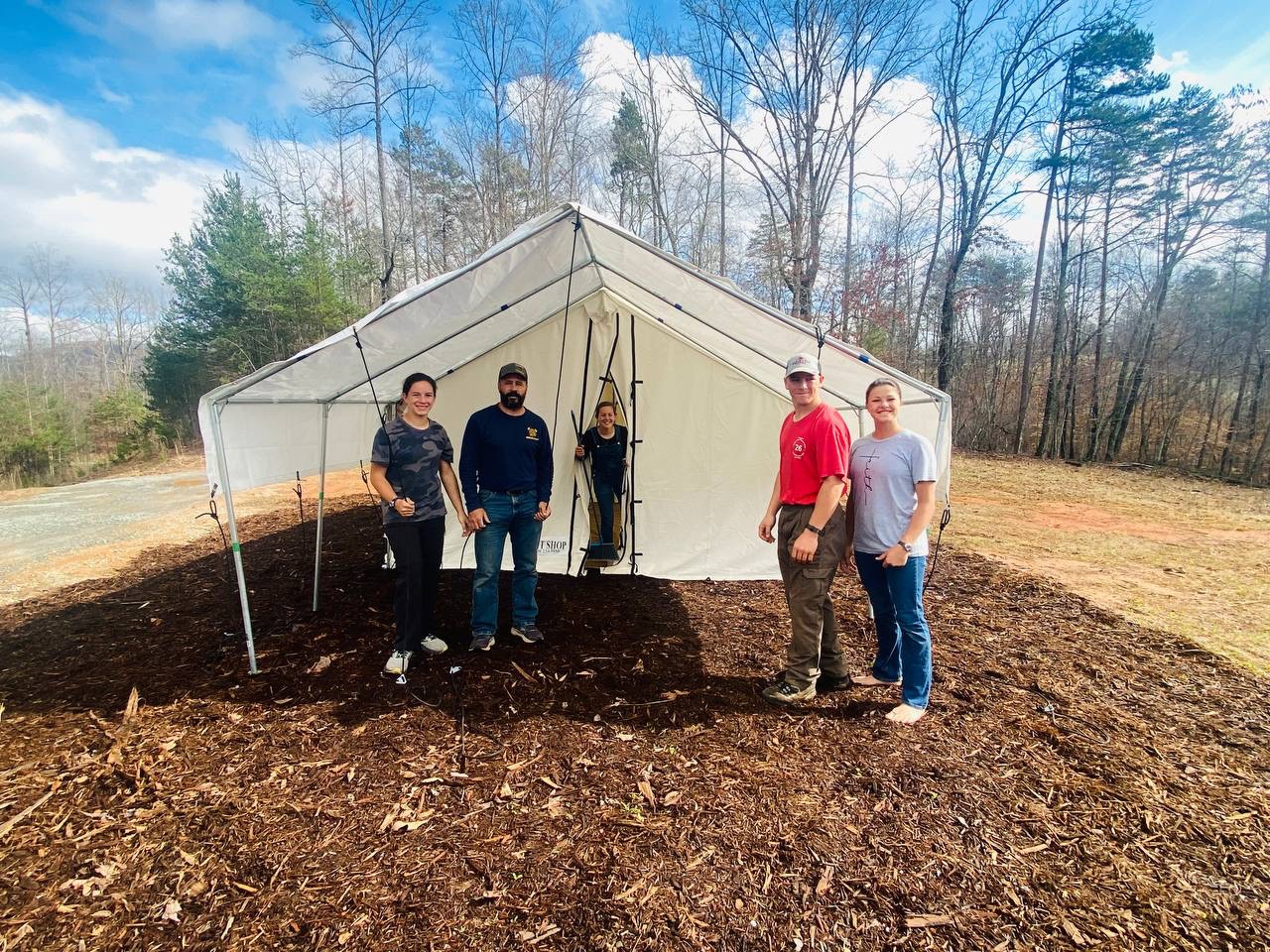 Brian kindly had a load of mulch delivered to create a nice landing spot for our set up! He was thinking of all the mud in tents, and did this for us to make it easier. So thoughtful! It’s super nice!