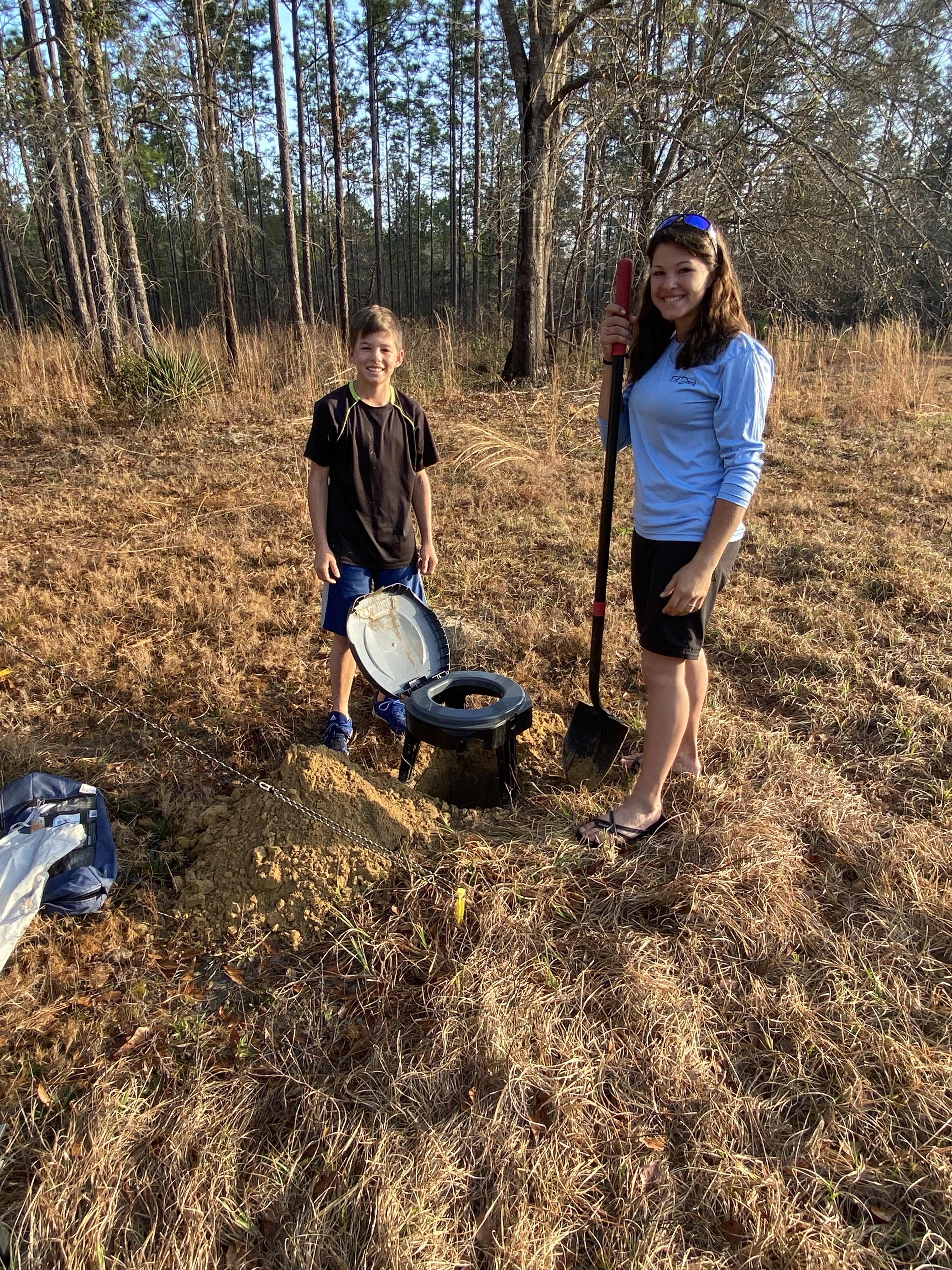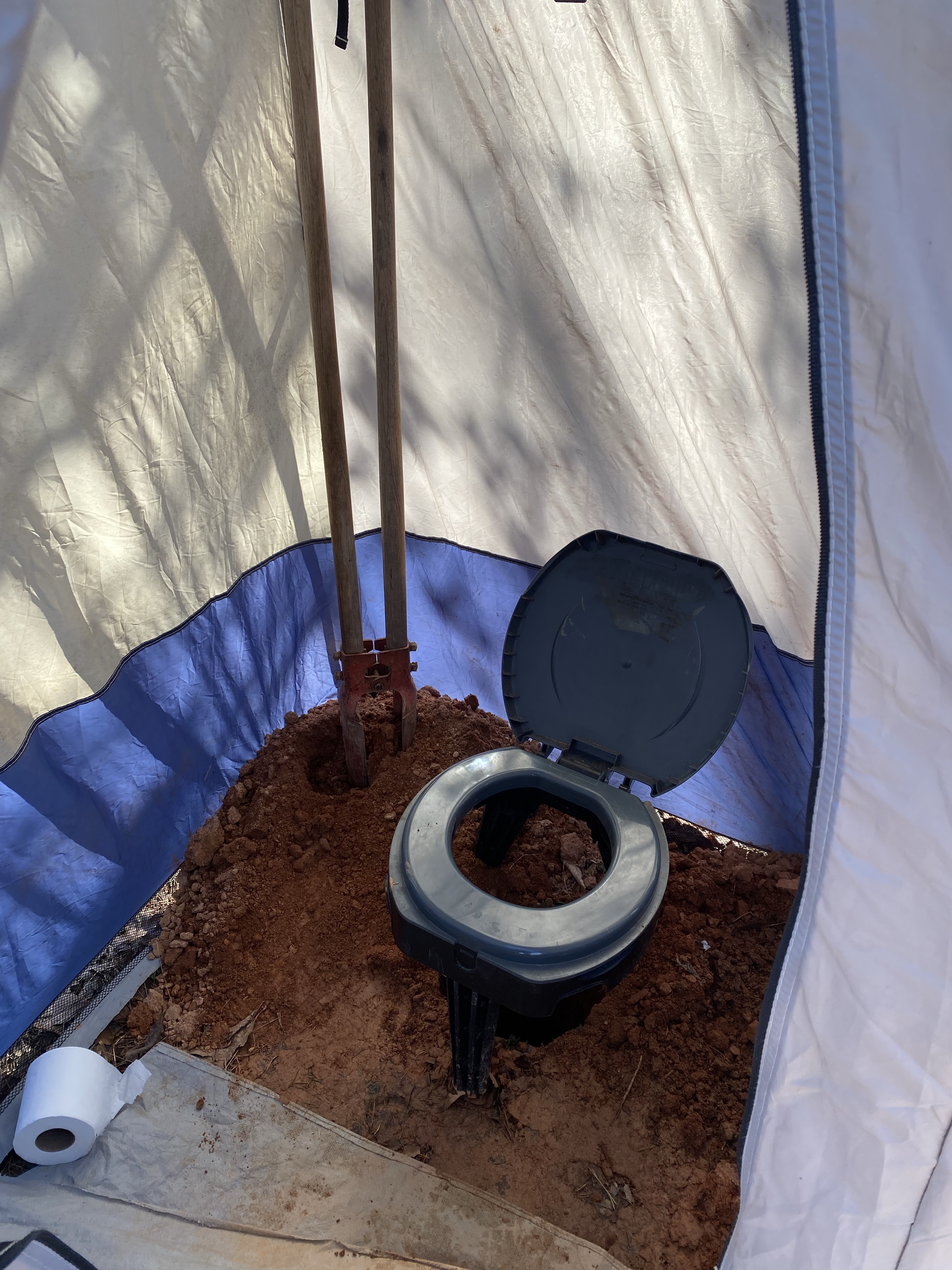 We are using our own version of “composting toilets”. We use a 5 gallon bucket, toilet seat, compostable trash bag, and pine shavings. It has worked well. When we get established somewhere we use our “outhouse” and that works well too! We purchased the camping shower from academy a few years ago and transformed it into our outhouse. Just dig a hole about 2 feet deep, set the tripod toilet over the top, and as it is used, kick a little dirt over the hole and it’s ready for the next person! Neither one has been too smelly and as long as it is maintained properly they work great!