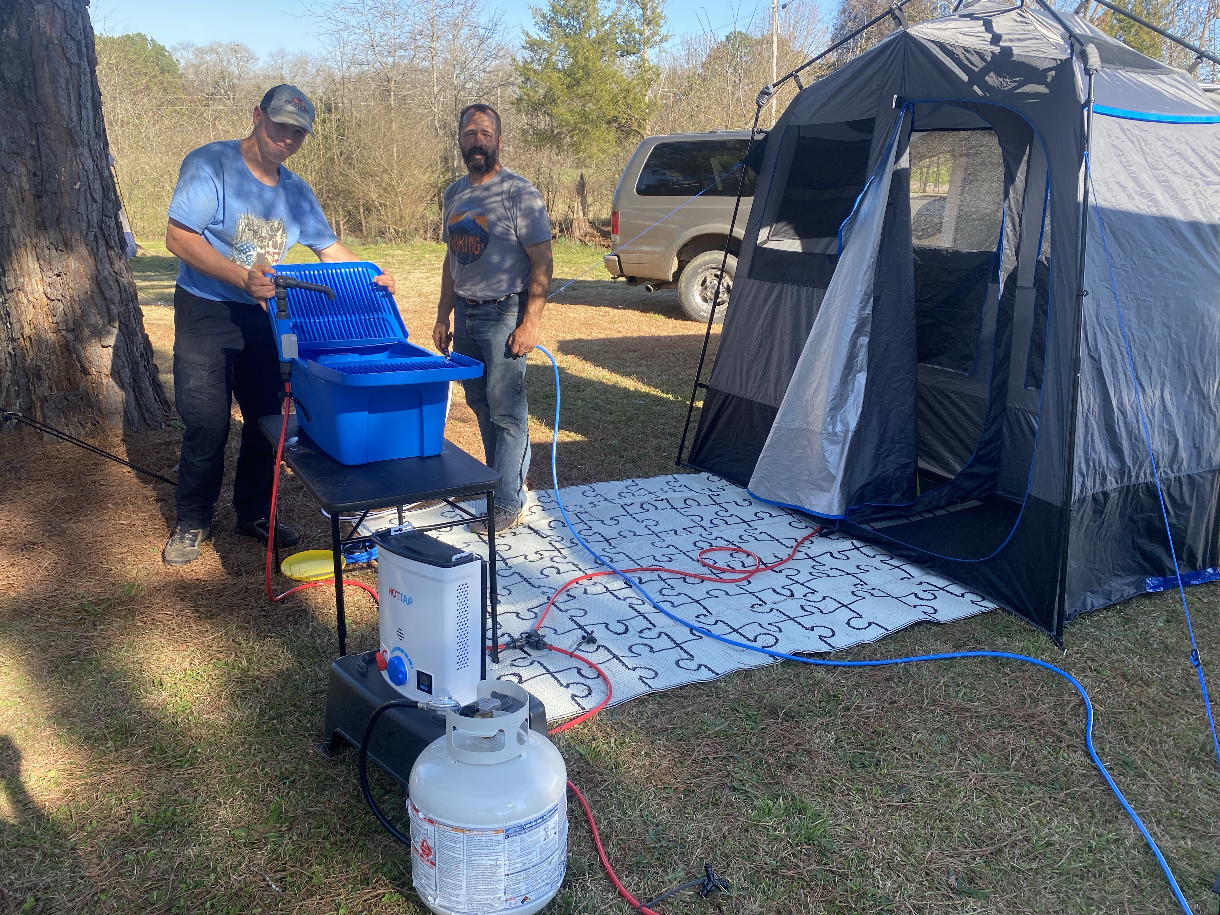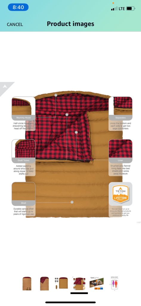 Good sleeping bags has also been extremely helpful on our journey so far. We have a variety of them and they all are 20 degree or colder sleeping bags. It has made it possible to sleep comfortably in the cold weather without having to burn lots of firewood. Definitely a good investment for us! The one pictured below is a double sleeping bag called the “mammoth”. I didn’t think I would enjoy sleeping in a sleeping bag, but let me tell you! It has been wonderful! Both sides zip up if you want and honestly, we haven’t used the sheets and quilt at all on the cold nights. Just hop in the sleeping bag and you are good to go!