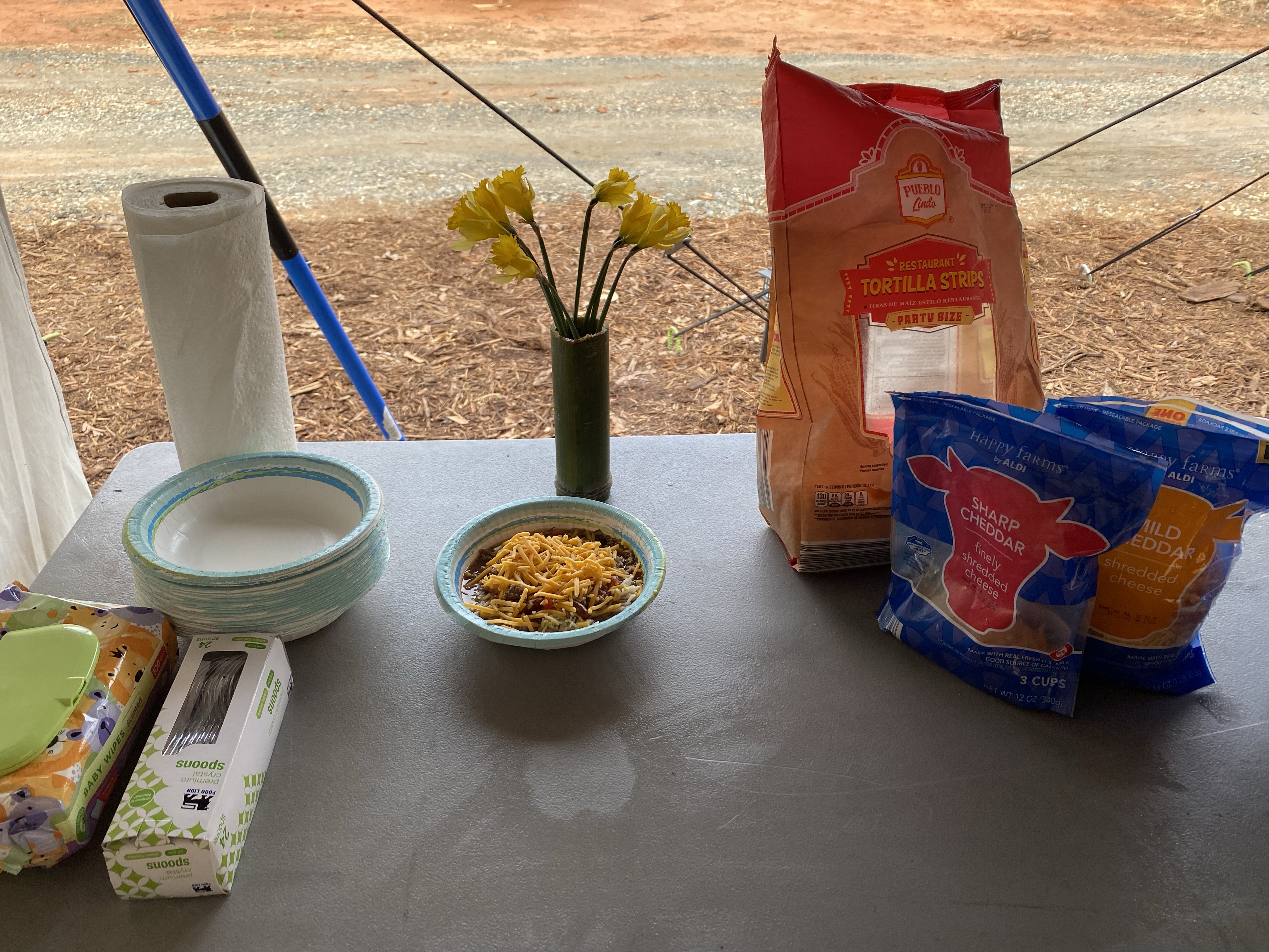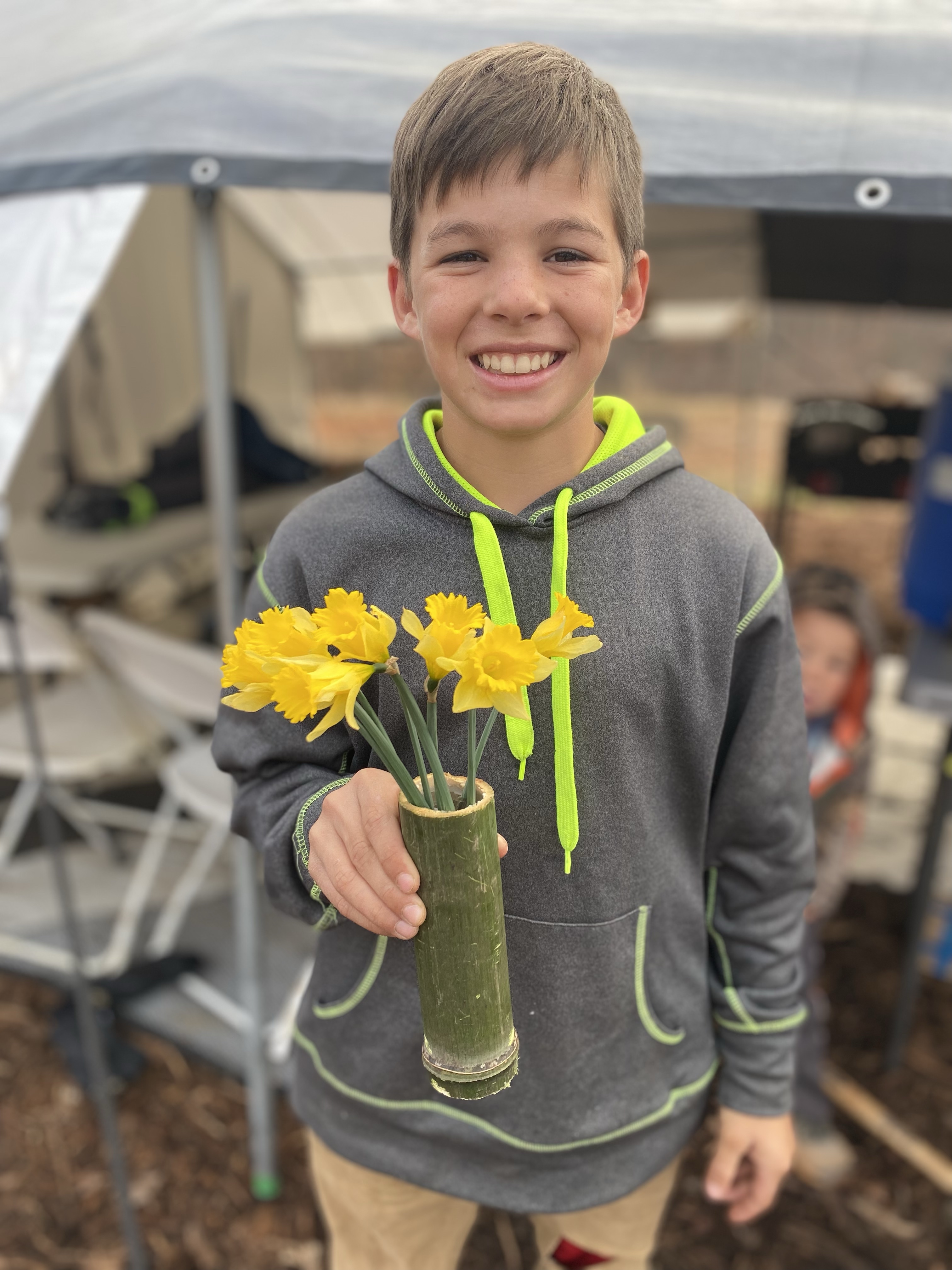 They were able to get a small project done with Brian when they got back. Along their hike they cut down a bamboo and cut it into small sections to make cups. We had taco soup for supper and some of the kids even used them as a bowl. I used one for a vase for some flowers James picked for me.
