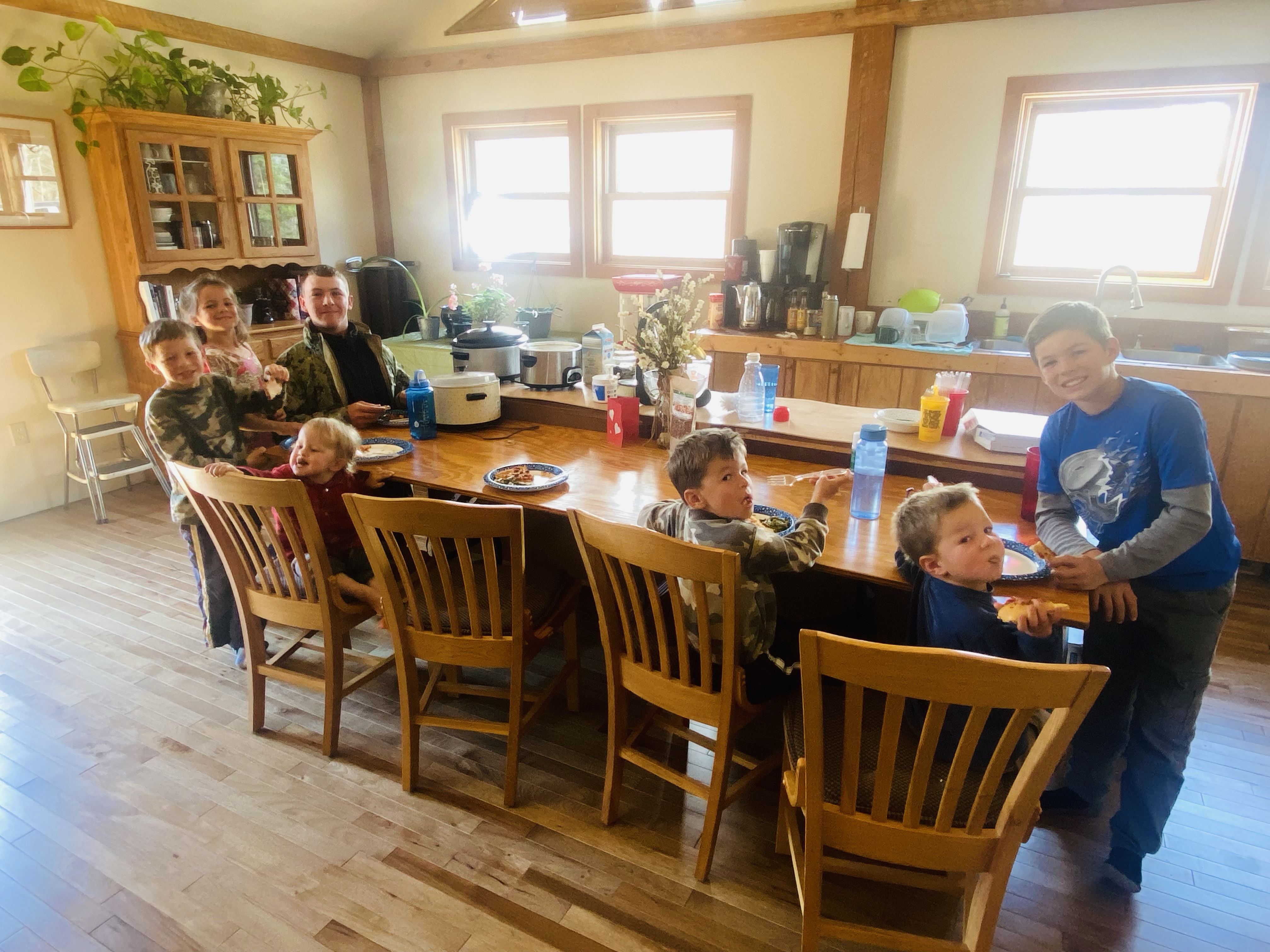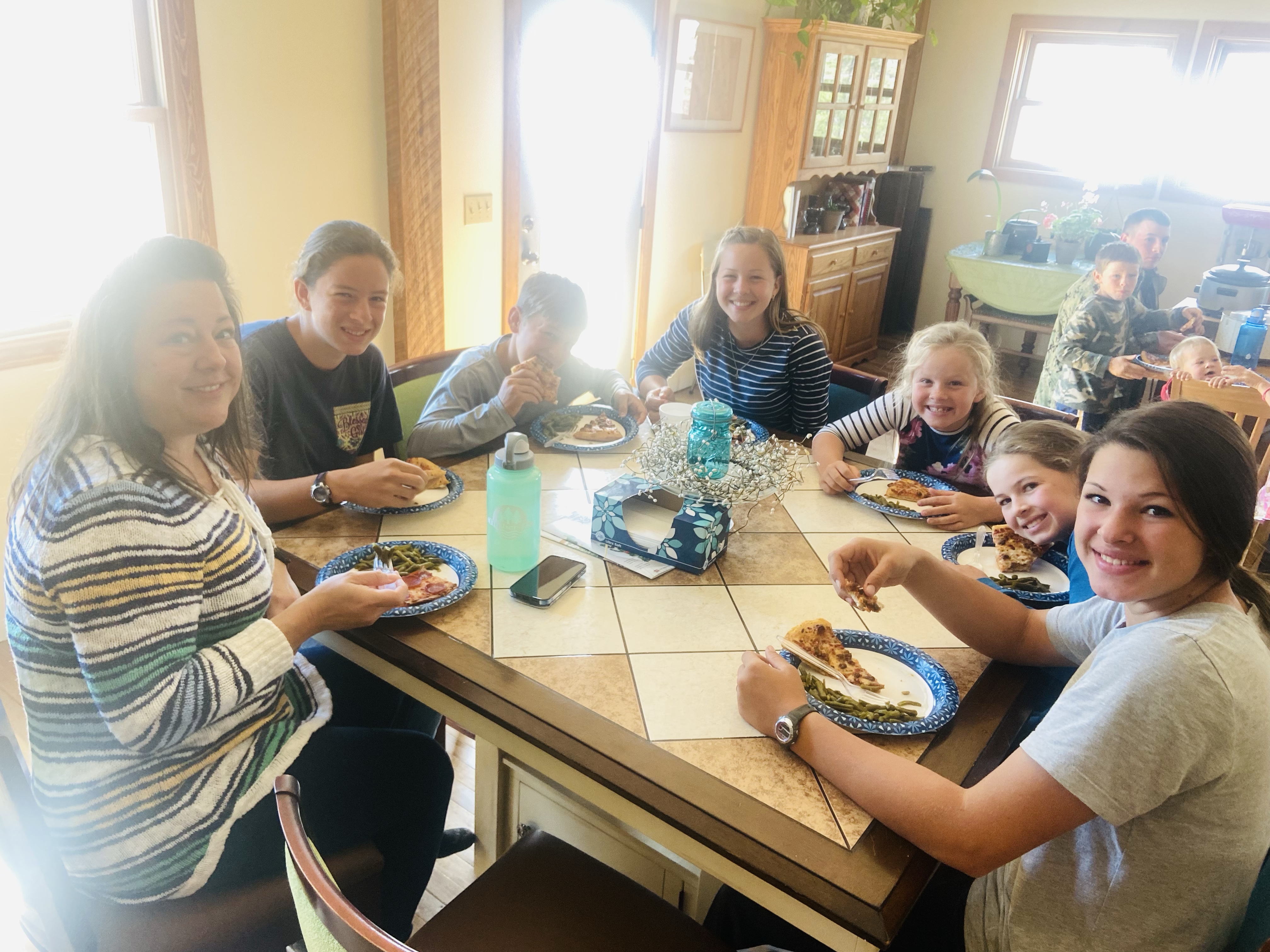 Lydia, Marilla and Sonora got to go with Aunt STEPH to a baby shower! And when they got back, they brought pizza for everyone as a thank you for all the work that got done yesterday. So very thoughtful! Then the kids watched a movie downstairs while the 4 adults visited upstairs. It made for a nice time being inside during the freezing weather!