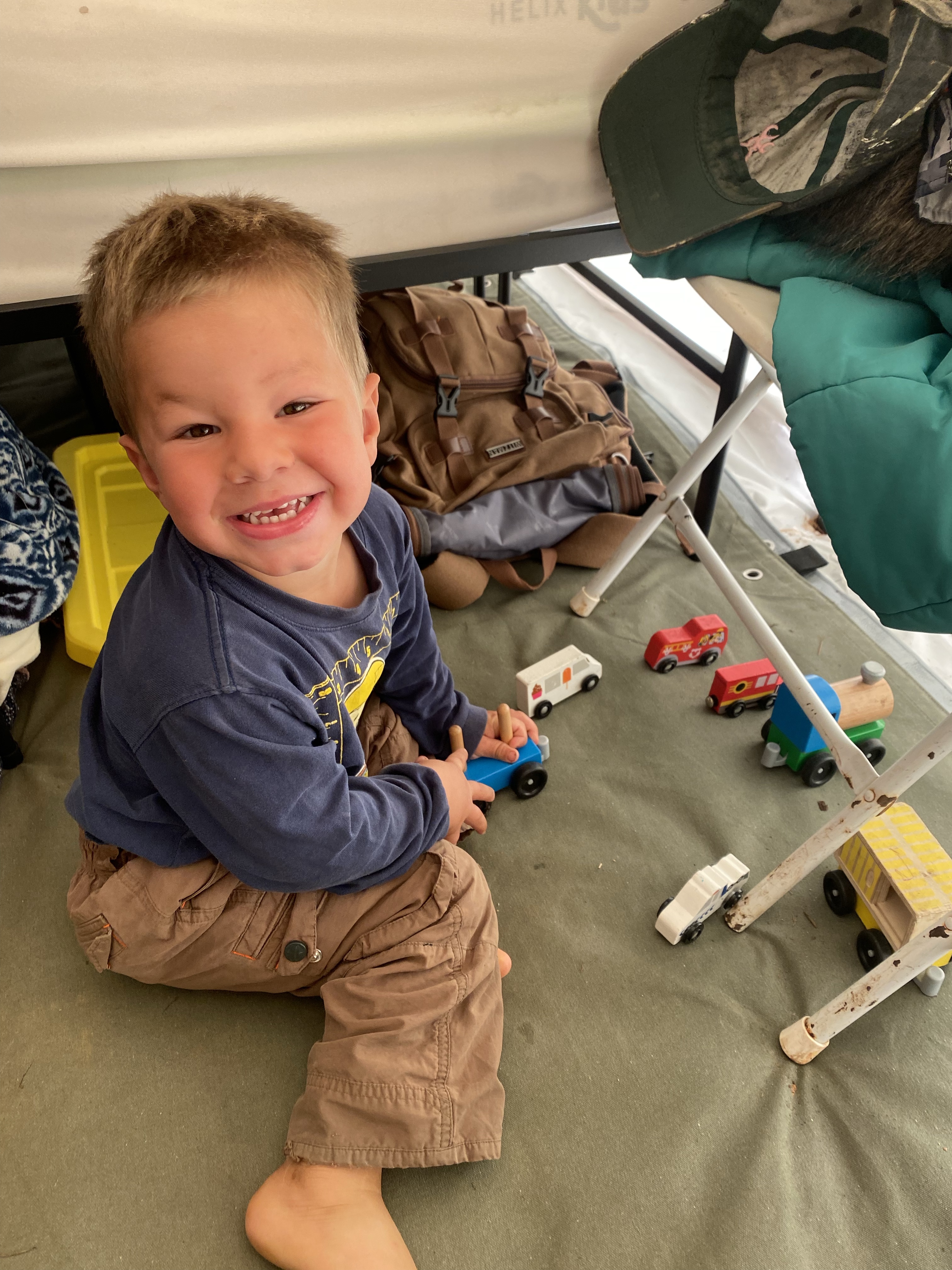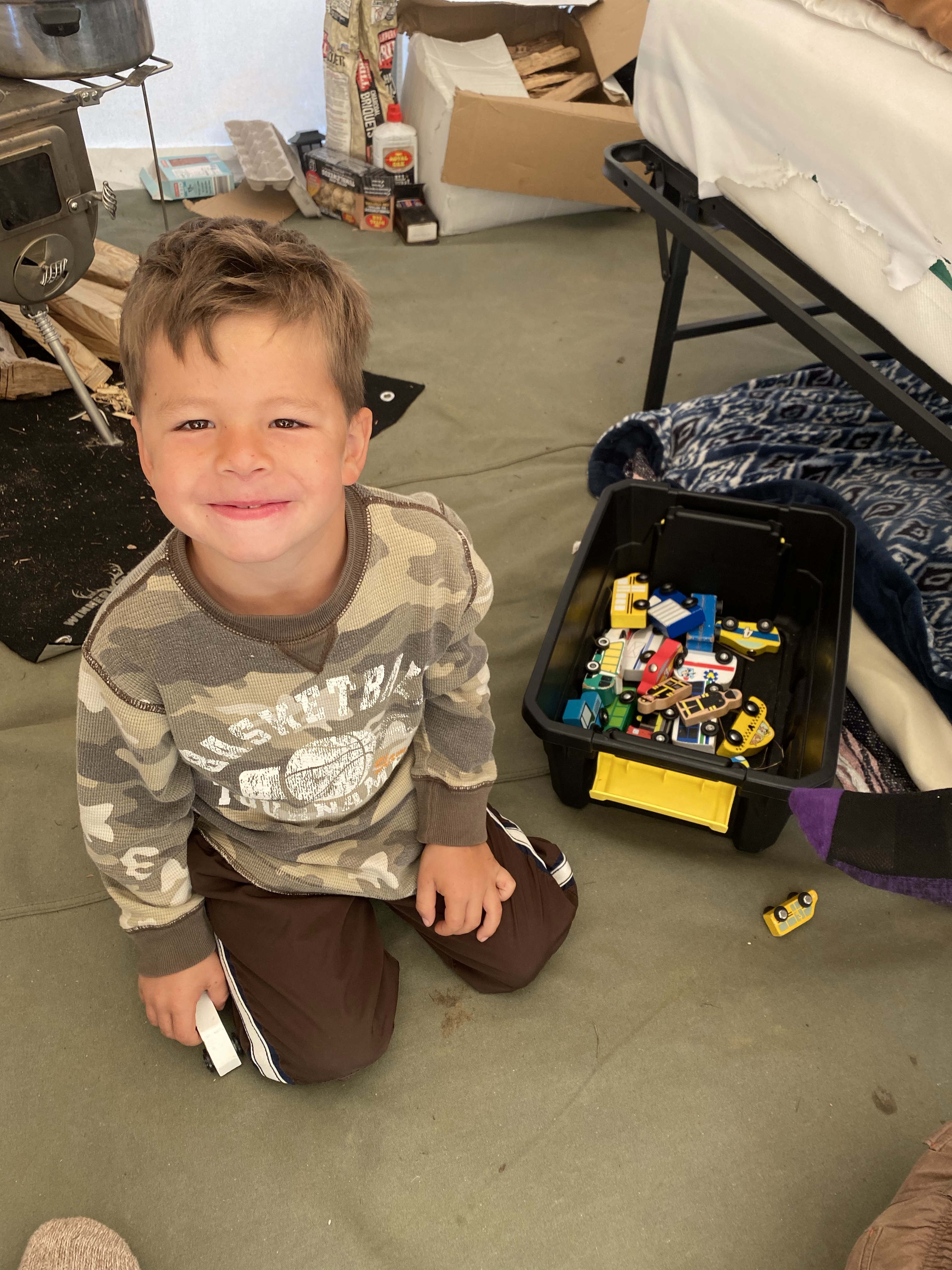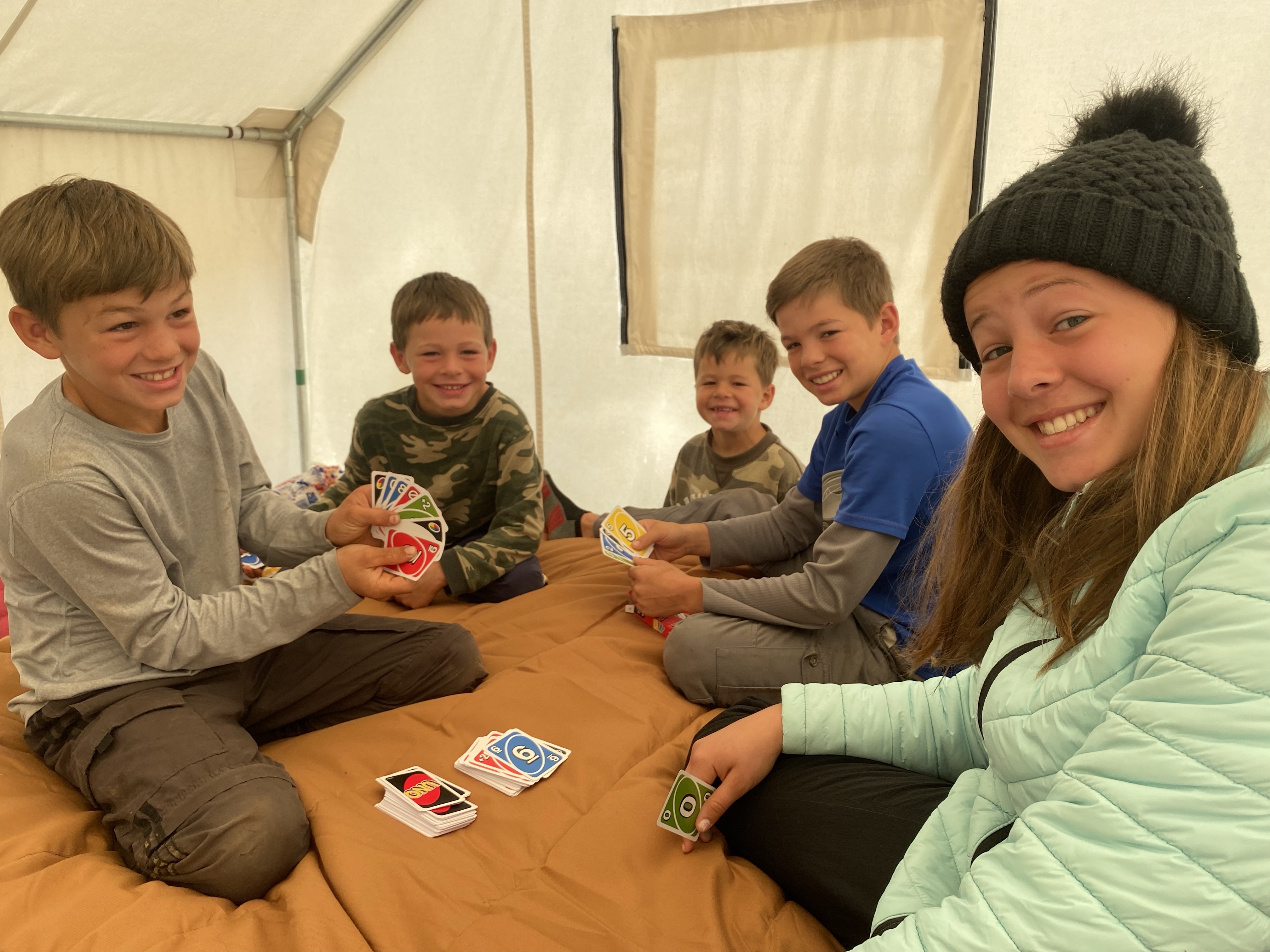 Overnight we had quite the rain storm. And that brought in some super cold temperatures!! The high for today was only just above freezing! That meant we spent a good portion of the morning inside the tent where we had a warm fire going. It was a bit crowded with all the active little ones, but they played cards, made up stories, played with the cars and trucks and watched family videos.
