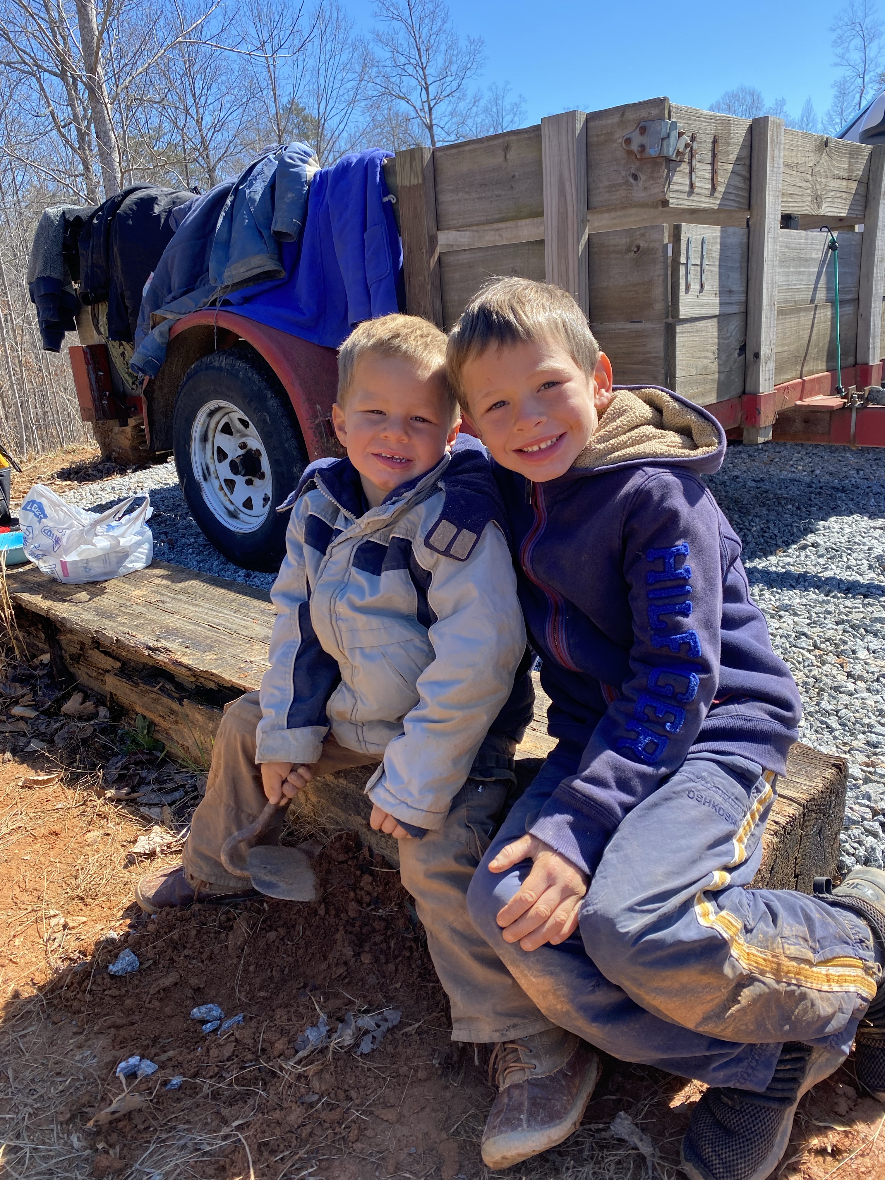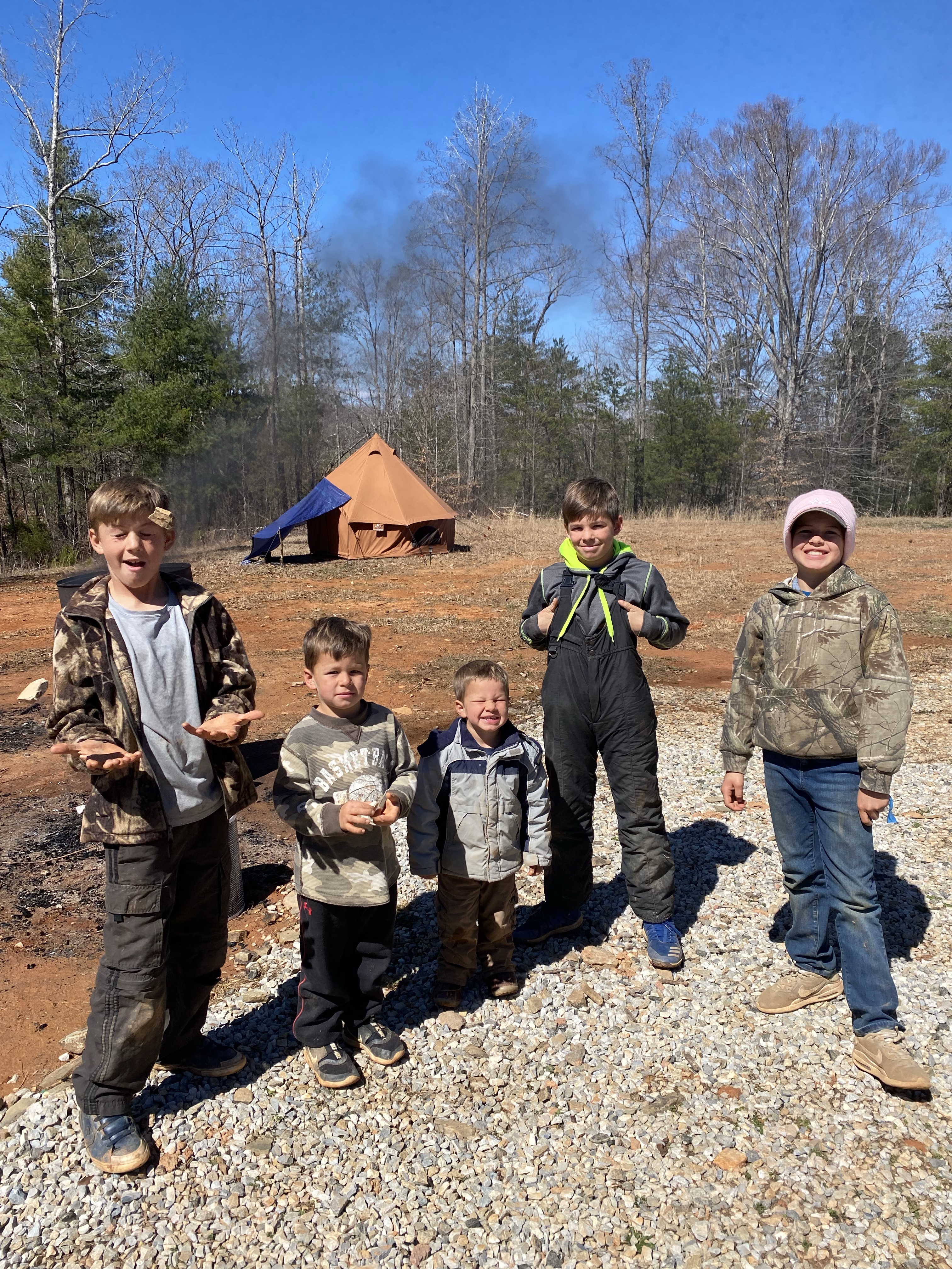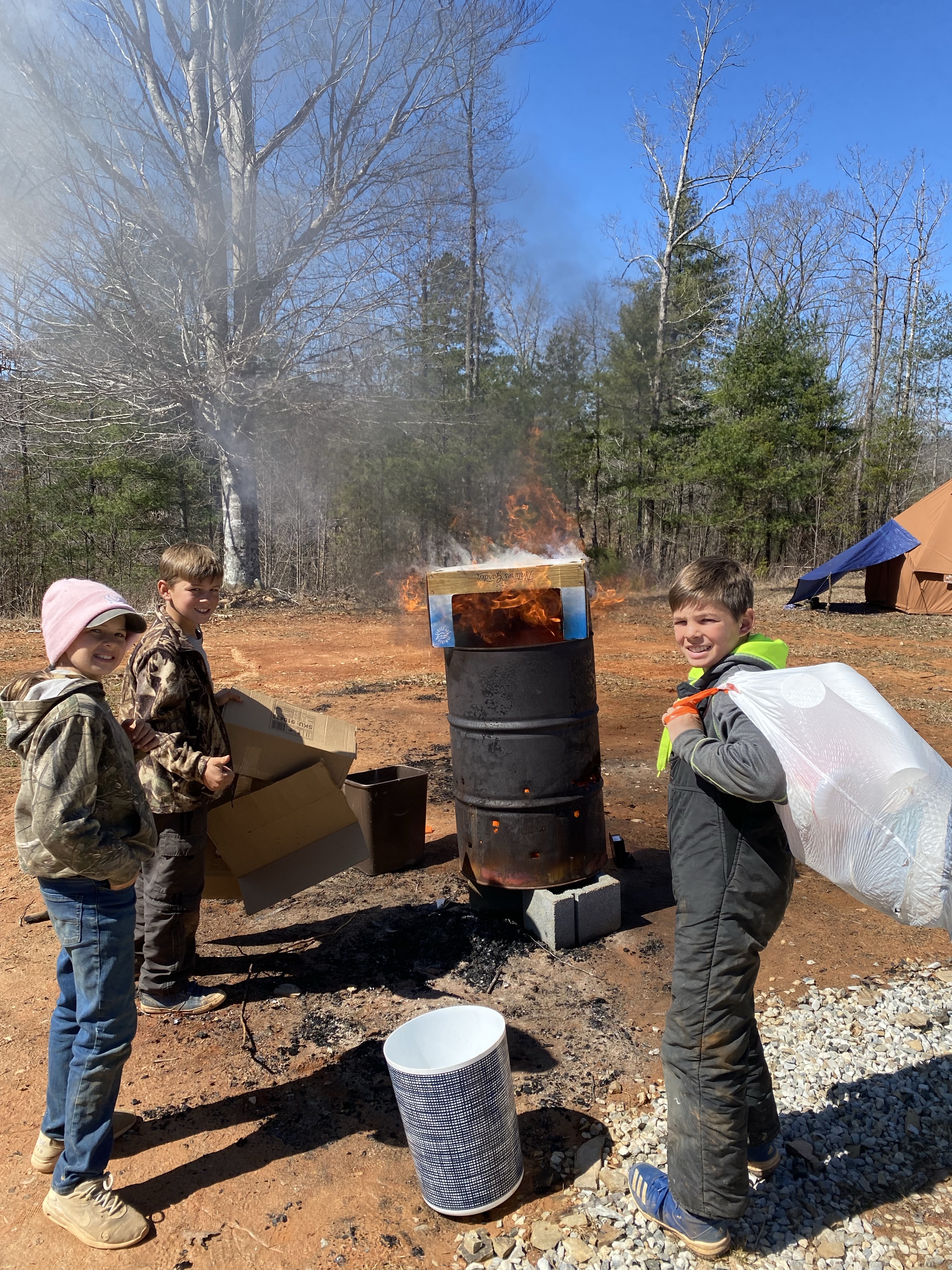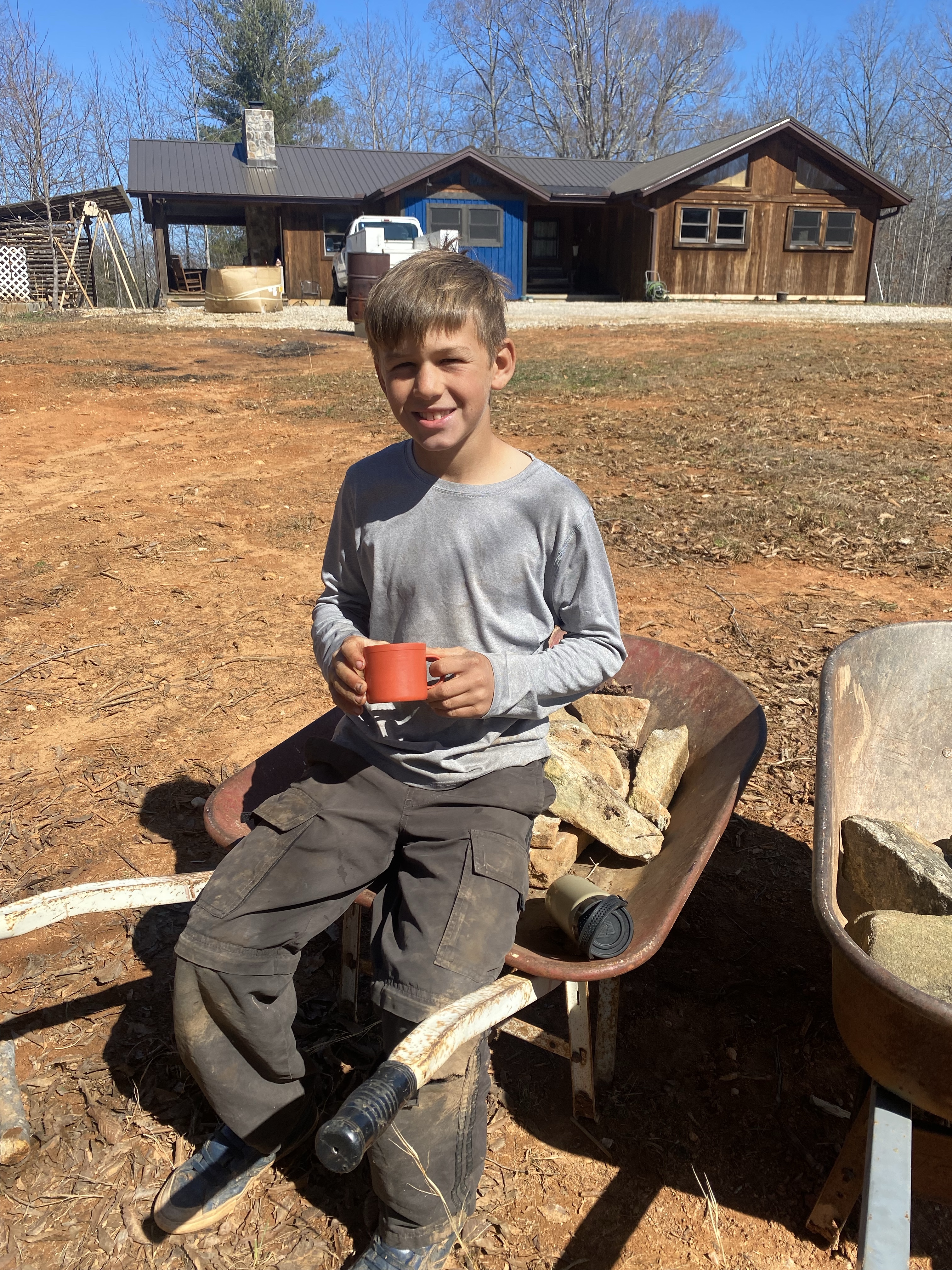 The middle and littles busied themselves with burning trash, and hauling stones in wheelbarrows while some helped make lunch and others finished the under the house project. They all had a good time.