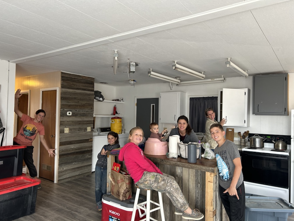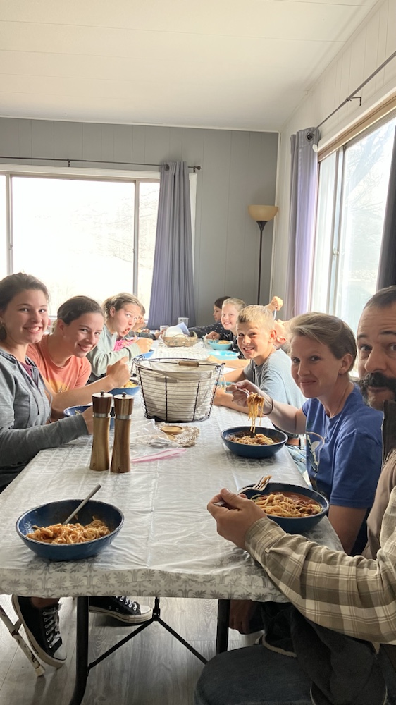 This little home is 1200sq. ft. and fits us perfectly! All the girls are in a room, Stephen and I and the baby get a room, and the boys put out their mattresses in the living room at night. It’s perfect! It’s so nice having a wood burning stove with a glass window! After I broke our glass 2 winters ago, having a fire just hasn’t been the same. Still nice and warm, just not as beautiful. But here we get to see the fire again and I love it! Another hug from the Lord 💞